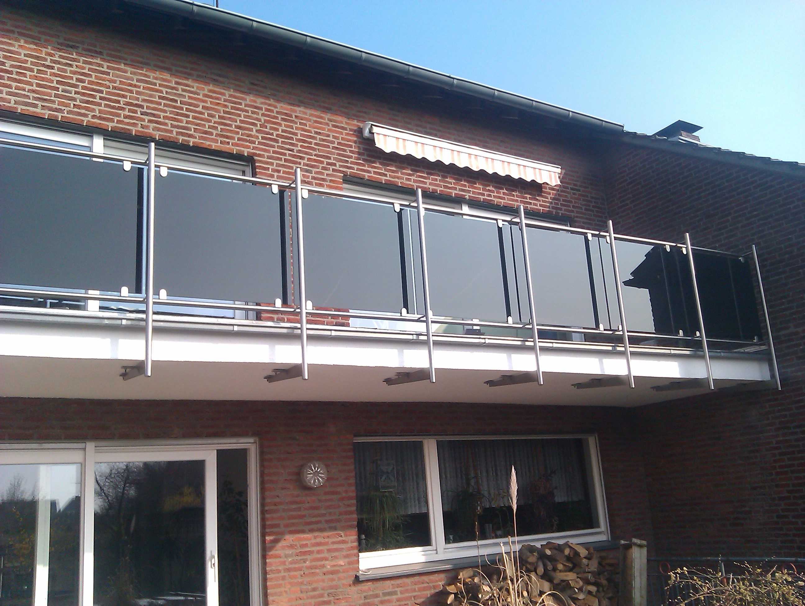 Balkongeländer verzinkt und beschichtet Bv Brünen.JPG Edelstahlgeländer Bv Kleve.JPG Edelstahlgeländer Bv Nütterden.JPG Edelstahlgeländer mit VSG Sicherheitsglas Bv Uedem.jpg Gehweggeländer Bv Rheinprommenade Rees.JPG